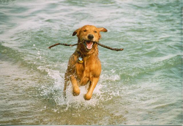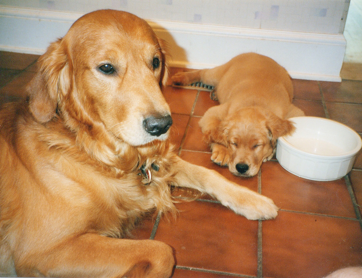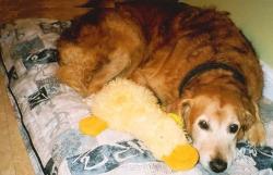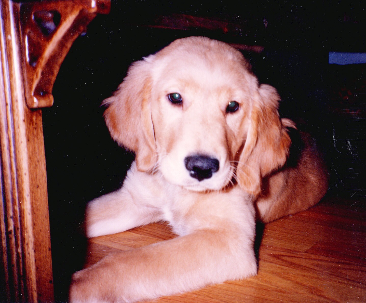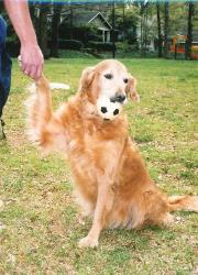 | Cubby History Cubby was born on 8/30/92 to Buddy and Goldie, both owned by the Kevin Smith family in southwest Chicago. There were eight puppies, one female that the family kept and seven males. We narrowed it down to the two quietest puppies, then picked Cubby because he was the more affectionate when we picked him up; very scientific. I had to find an ATM to get $275 (best money I ever spent) and I held Cubby as we brought him home on Halloween. I remember it was on a Saturday that year. Cubby was named after my Wichita cousins’ Collie when I was young. He, in turn, was named after my mother’s family dog when she was young. Cubby is, of course, a popular name in Chicago, especially as our house was less than half of a mile from Wrigley Field. But that was just a happy coincidence. Because we got Cubby on Halloween, I thought of the word “boo,” which made me think of Yogi Bear’s friend, Boo-Boo, from old cartoons. Cubby’s AKC registered name is Cubby Boo-Boo Bear, which for some reason tends to make serious dog folks laugh. We planned to crate train Cubby during the day when we were away and at night, but the latter plan changed the first night. As soon as he cried when alone at night, we brought him upstairs. He was so well behaved that after a month or two he had run of the house when we were away, but we kept the crate in the kitchen and he continued to use it as his “den,” taking treats there and going there for naps. I remember Cubby’s first winter as being cold and snowy. When he was six months old, we took an obedience class. The instructor was a big, fat guy who owned Chihuahuas and intimidated all of the dogs. After that class, I took Cubby to a more serious obedience school in Evanston, where many of the owners showed their dogs in obedience. I entered Cubby in a couple of shows in northwestern Illinois and we made a weekend of it, visiting Galena. As I recall, he came in 3rd both times. I also entered Cubby in a really big show in Cleveland, which I combined with a visit to friends there. It was an extremely hot summer day, almost too hot for the dogs. There were so many dogs entered that there was a long wait. I made friends with a family showing their Golden and they let us sit in the shade of their camper. As I recall, they called out the winners starting with 4th place and I was surprised and delighted when Cubby came in 1st. Besides obedience, I showed him a couple of times in “breed.” I was so ignorant about it that I entered him in more than one class (which is a no-no); and even with some last-minute training by an experienced show dog handler I was quite awkward. But we had a fun time, with our friend Clark visiting from St. Louis. Cubby won his class (As I recall, he was the only one entered) but not anything further. Cubby had a regular social circle. Every morning, I drove him to a spot in Lincoln Park where his friends met. We kept that up for a couple of years. He also had neighborhood friends, canine and human, from our walks. His best friend was Nancie’ s dog Bugs. I was extremely depressed during that period and Cubby basically kept me going. After obedience, we got his Canine Good Citizenship, then his therapy dog certification. We regularly visited Children’s Hospital, making rounds from room to room. We also did a session at night, in the gymnasium, with the psychiatric inpatient kids. Essentially what I did was to train the kids to train Cubby (sit, fetch, stay, heel, etc.), which gave them a sense of accomplishment and empowerment. We also worked a summer camp program for severely handicapped (mentally or physically) children. We regularly visited a nursing home, making rounds from room to room. We made some good friends there and it was sad when they passed away. We had some successes such as when an uncommunicative patient would suddenly open up, or a patient seemingly crippled with arthritis would suddenly begin using their hands, after contacting Cubby. We also went to another nursing home with Nancie to sing carols on Christmas eve. One day I saw an ad in the newspaper for a local talent agent specializing in animals, aptly named Beauty and the Beast. I sent some photos, including that great one of Cubby bounding out of Lake Michigan with a stick in his mouth. After some months, I got a call for our first assignment. Cubby primarily did print ads, mostly for furniture, with major department stores. Unlike many of the animals, who were not necessarily social or well trained, Cubby was easy to work with. Mostly they just wanted him to sit or lay in one spot and, with his “stay” experience from obedience shows, that was easy for him to do. He was the most working animal model in Chicago. We did one TV ad, with Grant Hill (then of the Pistons), for McDonald’s. Grant Hill was impressed with Cubby and asked me to go to Detroit to train his two Lab puppies. Cubby was so well behaved that his exceptions were remarkably few. I do recall that he was not happy when I started working outside the house. He demonstrated that once by chewing some of his obedience ribbons, which was ironic. When I moved to Atlanta, I tried to recreate Cubby’s activities. But their therapy work here was not as sophisticated; and there was no animal talent agent. Shortly after we moved here, I received a call from the owners of Holly (also known as Mrs. Cubby). I had met them one time when Cubby was working a big dog show on behalf of Rainbow Therapy Dogs and a woman came up to us and admired him so much. She wanted to breed her Holly with Cubby. I drove back to Chicago when Holly came into heat. It was the first time for each of them and Holly’s mom tried to help things out by holding Holly’s tail to the side, but somehow in doing so she sprained Holly’s tail. So the breeding had to take place impersonally, with a vet getting sperm from Cubby and immediately injecting it into Holly. Cubby had the hots for Holly and it used to be that he got 